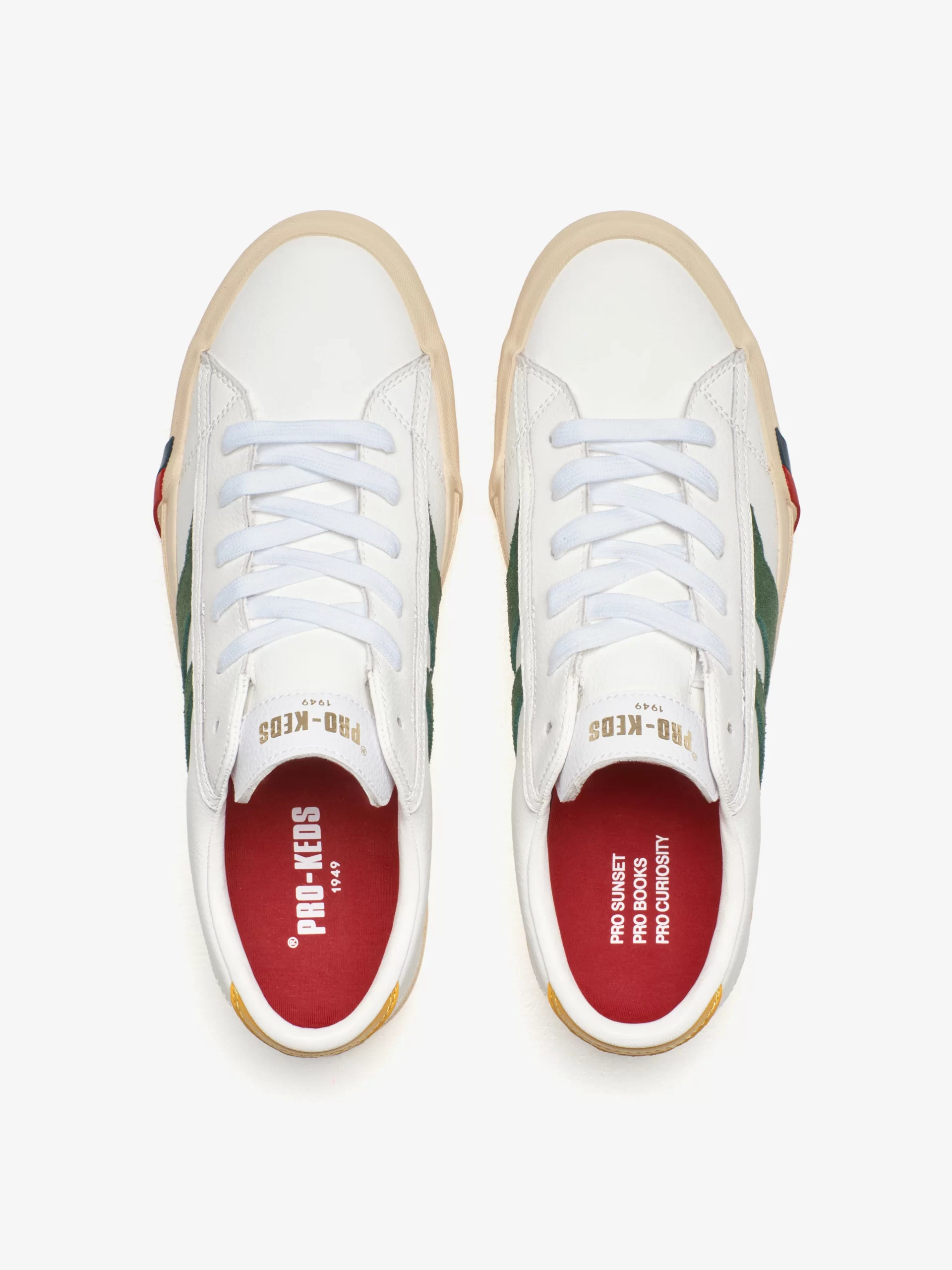 Sneaker ispirata all’archivio ®Pro-Keds del 1949, costruita per garantire struttura e comfort. Tomaia in suede o pelle premium con dettagli a contrasto, fascia elastica interna che facilita la calzata e fodera in pelle per un comfort superiore. Completa il design heritage la suola in gomma con l’iconico logo rosso e blu che prosegue sotto il battistrada.